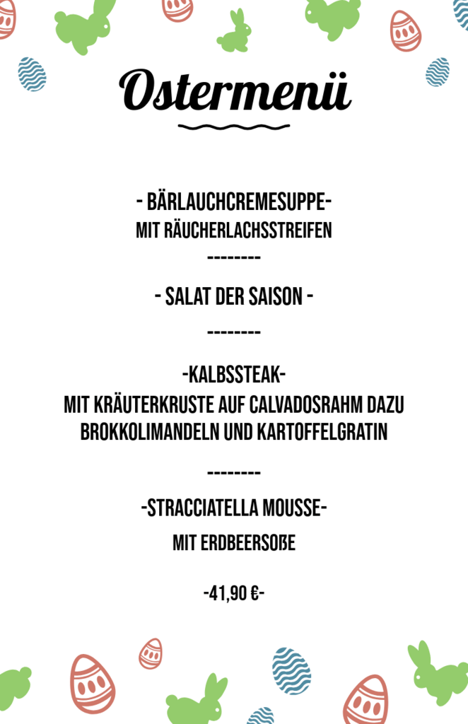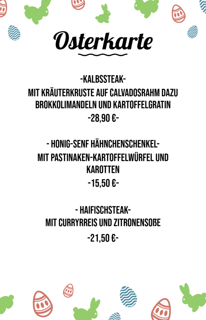 Wir haben über die Osterfeiertage regulär geöffnet, am Ostermontag von 11:30 Uhr bis 16 Uhr